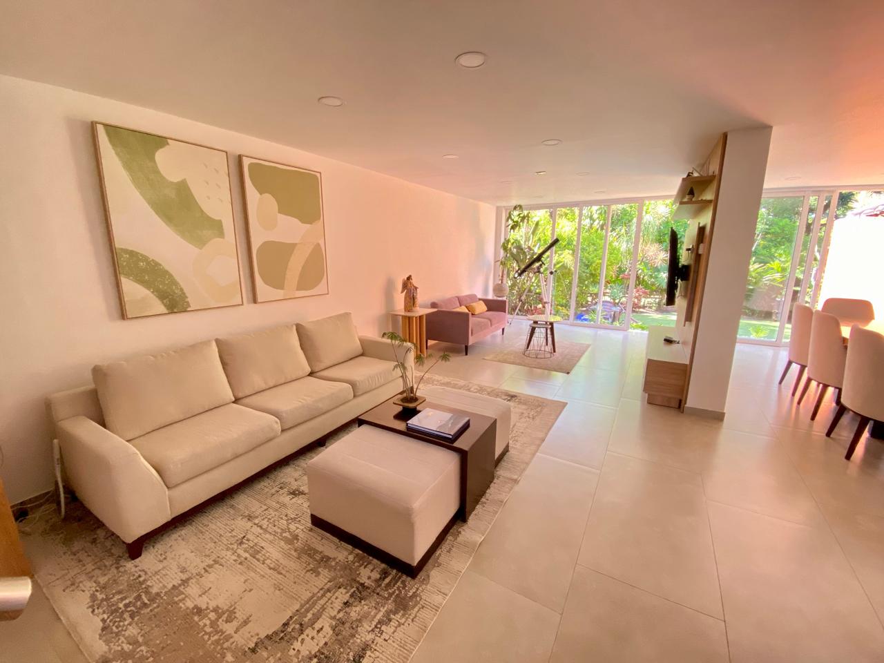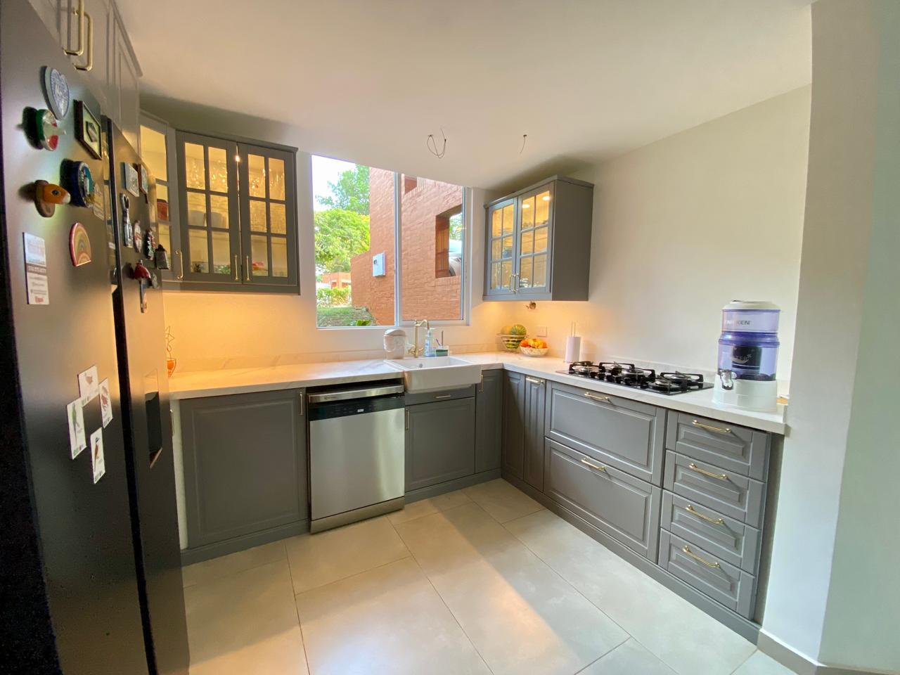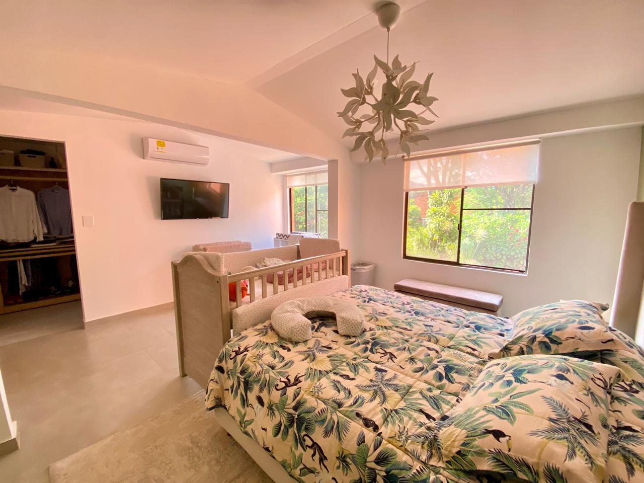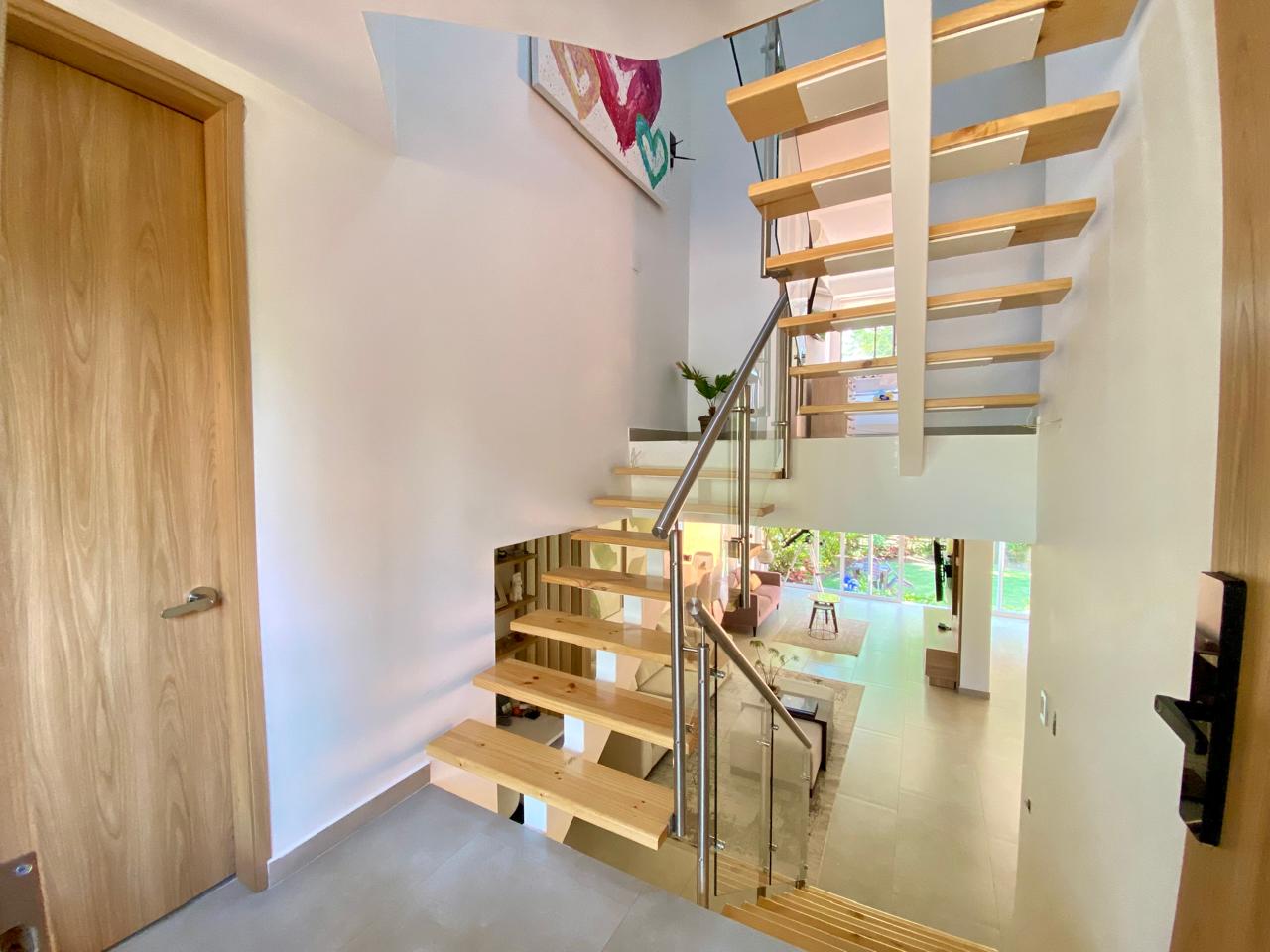 Casa contemporánea con excelentes acabados, en Condominio Campestre, sector de la Riverita. Consta de lote de 220 m2 y construidos 210 mt2, Amplia Sala, comedor independiente, hall de tv, estudio, Cocina americana, zona de ropas, cuarto del servicio con baño, baño social, zona verde rodeada de árboles y vista preciosa. Segundo nivel: 2 cuartos con baño y vestier, cuarto principal muy espacioso, aíre acondicionado. 3er nivel: Cuarto con baño y preciosa vista. Condominio con excelentes y amplias zonas verdes, piscina, juegos para niños, alta valorización, 2 parqueaderos.