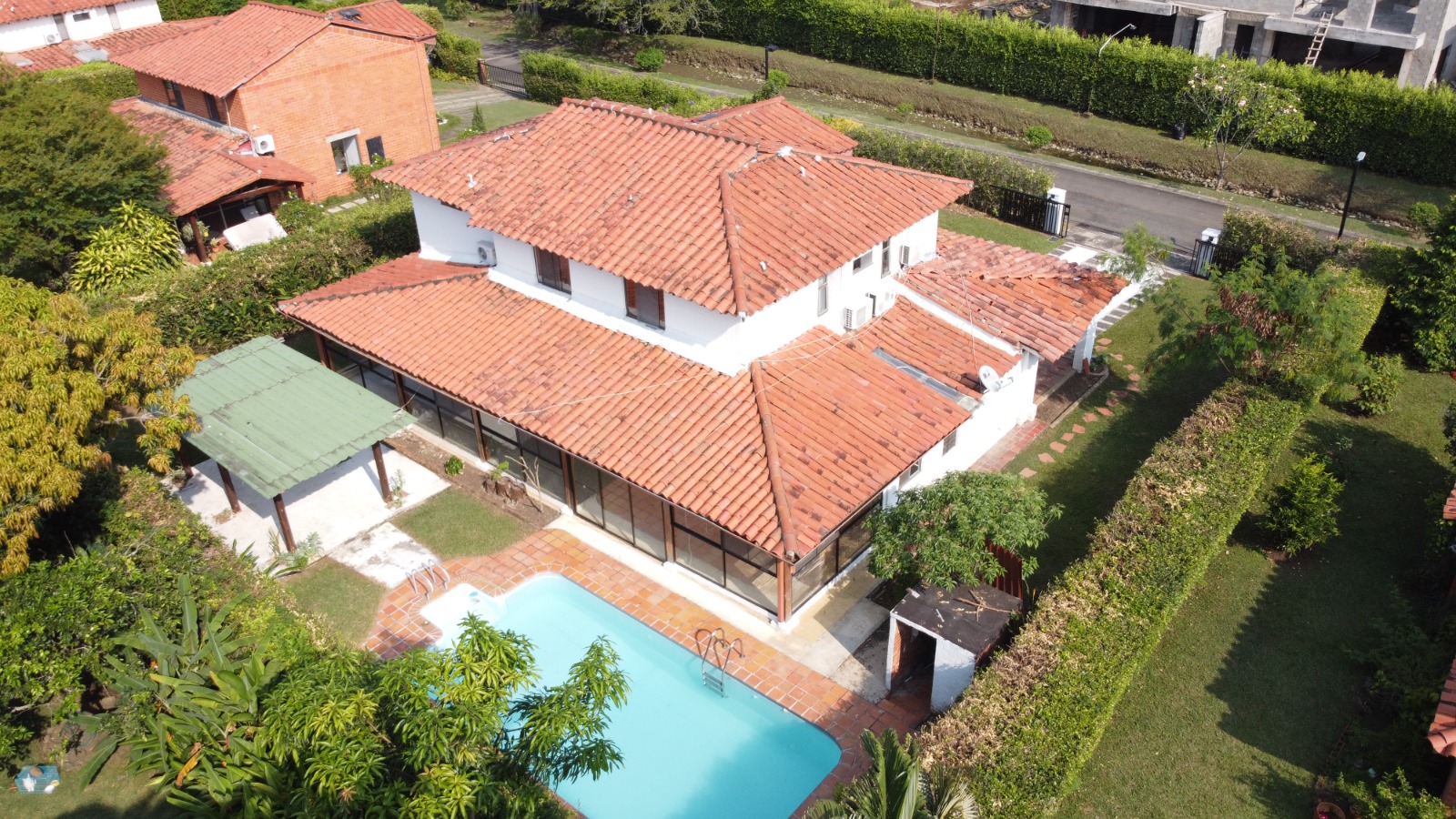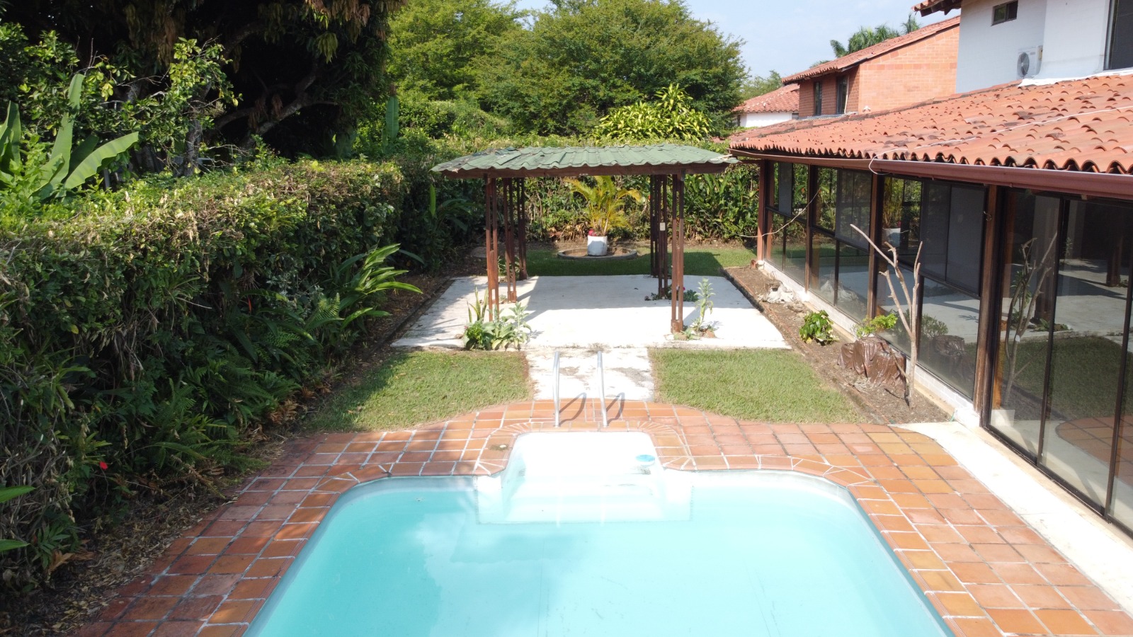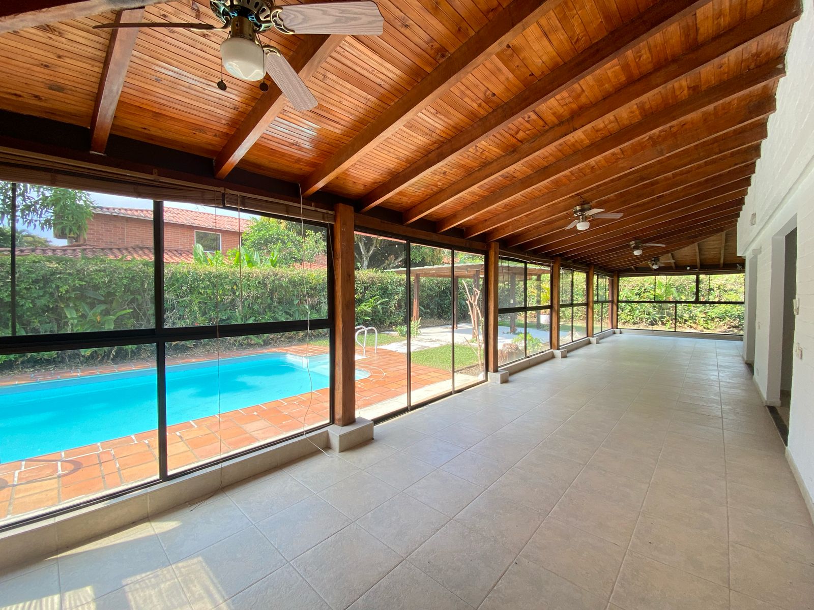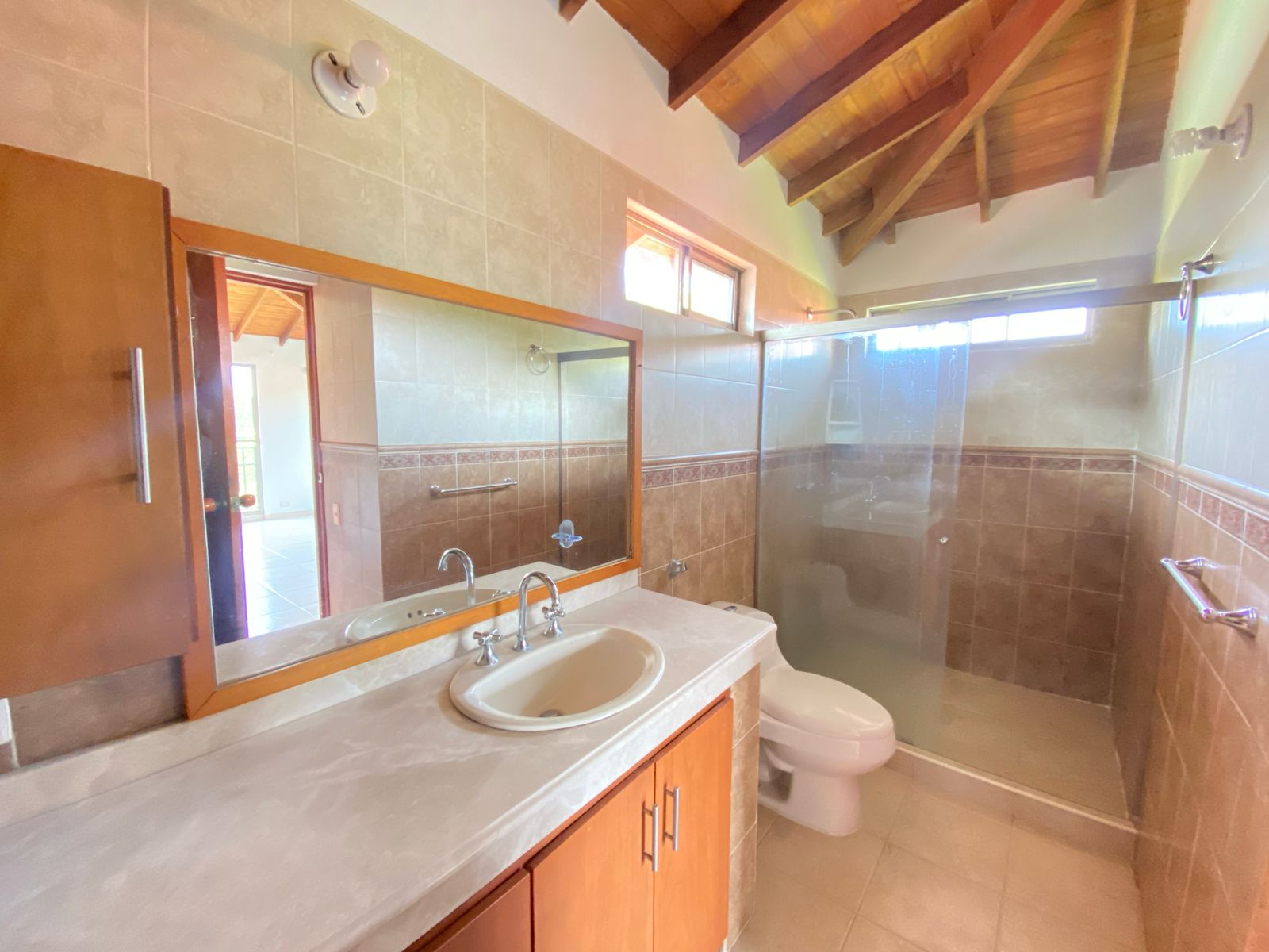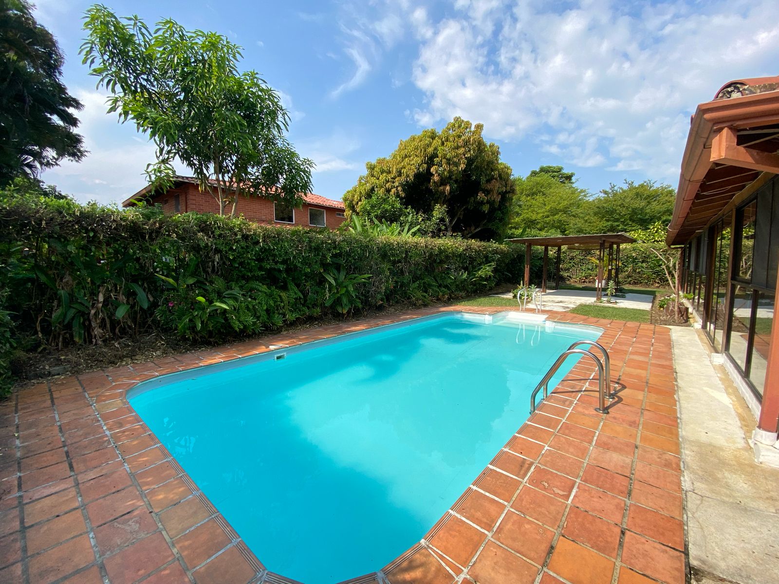 Excelente Casa campestre de dos plantas, 350 de metros construidos. Primer piso: sala, comedor, sala auxiliar, baño social, estudio o (alcoba en el primer piso), baño adicional primer piso con ducha, cocina integral, zona de oficios, alcoba del servicio con baño, estadero , zona verde, piscina. Segundo piso: 3 alcobas, principal con baño, closet, dos auxiliares una con baño privado y baño para alcoba auxiliar, sala de tv o estudio y parqueaderos 2 cubiertos y 4 descubiertos.